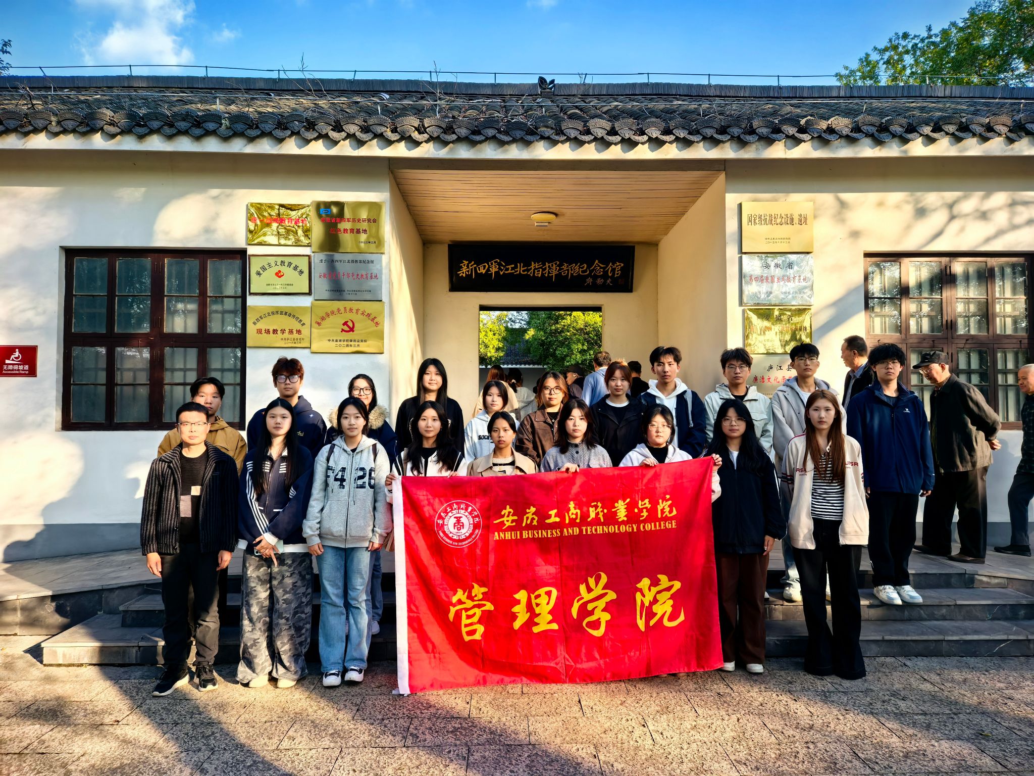 随后,一行人前往新四军江北指挥部旧址。大家参观了指挥部旧址陈列的文献资料、武器装备和生活用具,认真学习新四军在江北地区开展抗日游击战争、建立抗日根据地的英勇事迹。一幅幅泛黄的照片、一个个感人的故事,让学生干部们深刻体会到革命先辈们在艰苦环境中坚守信仰、浴血奋战的精神内涵。