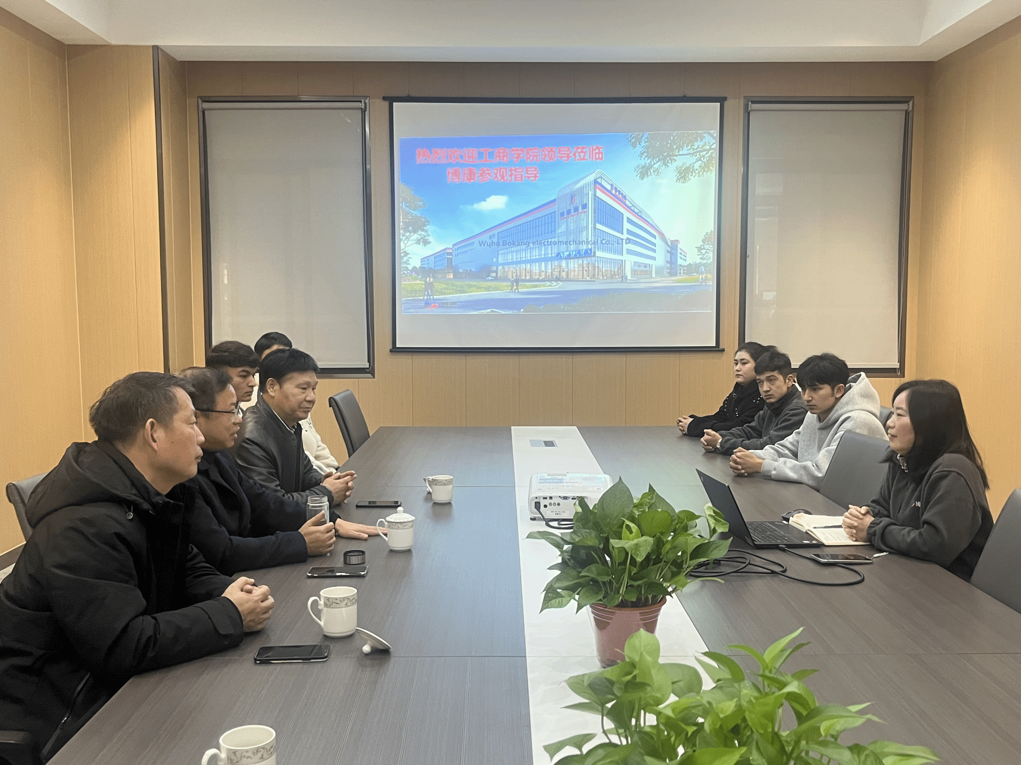 芜湖博康机电股份有限公司人力资源部经理刘燕对校领导一行的到来表示热烈欢迎,并全程陪同考察交流。在刘燕的带领下,胡捍东一行先后参观了企业生产车间、办公区域及员工福利设施,详细了解企业主营业务布局、核心产品研发及生产运营状况。参观过程中,校领导与实习生亲切交流,面对面询问他们的实习进展、岗位技能掌握情况及日常生活需求,耐心倾听大家在实习过程中的收获与困惑。领导们叮嘱同学们要珍惜实习机会,虚心向企业导师请教,在实践中锤炼本领、积累经验,同时注意人身安全与职业规范,展现我校学子的良好风貌。