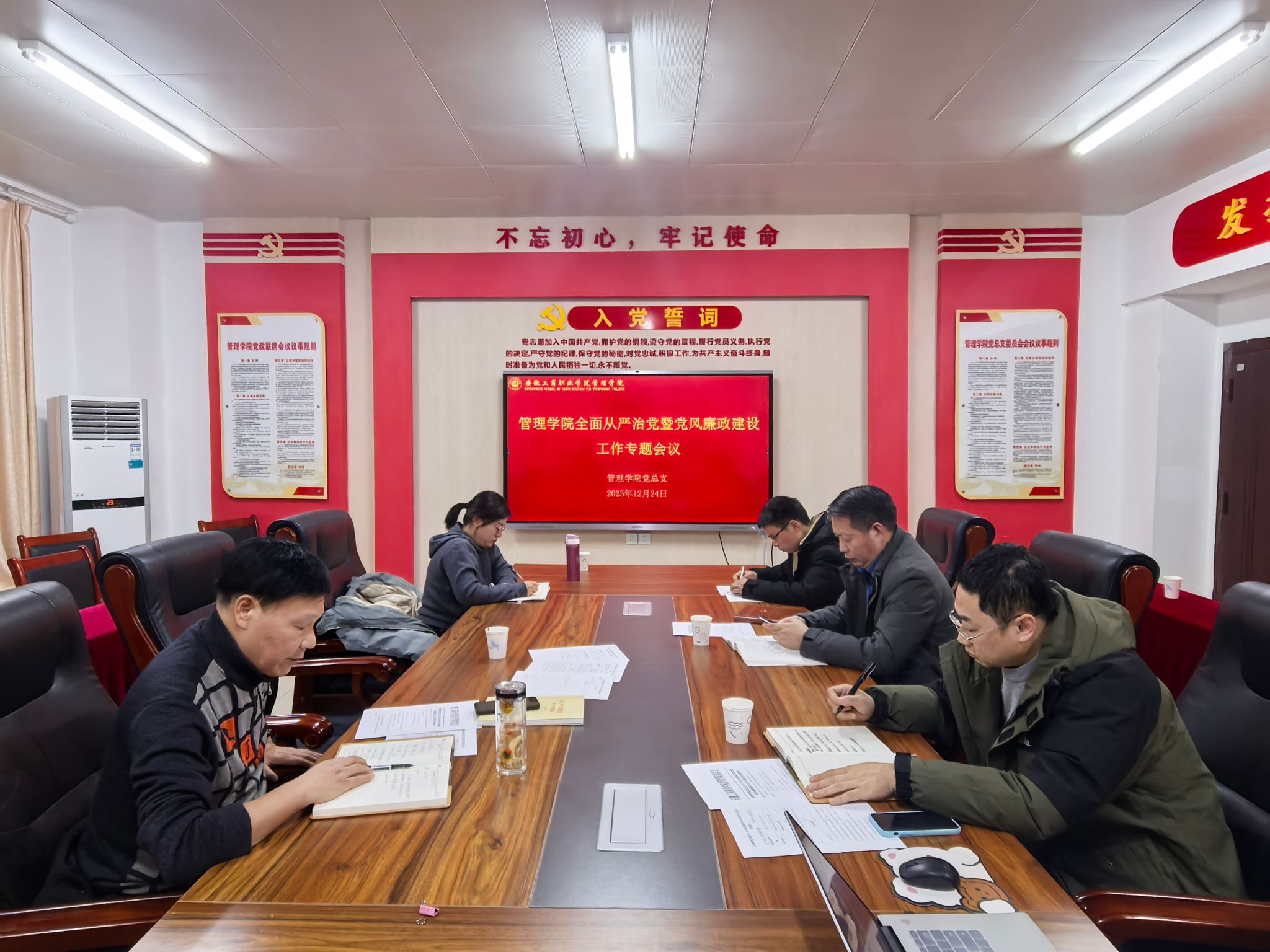 12月24日下午,管理学院党总支全面从严治党暨党风廉政建设工作专题会议召开,回顾总结2025年度学院全面从严治党暨党风廉政建设工作开展情况,研究部署下一年度重点工作。学院党总支书记曹大友主持会议,学院党政领导班子成员、党总支委员参加会议。