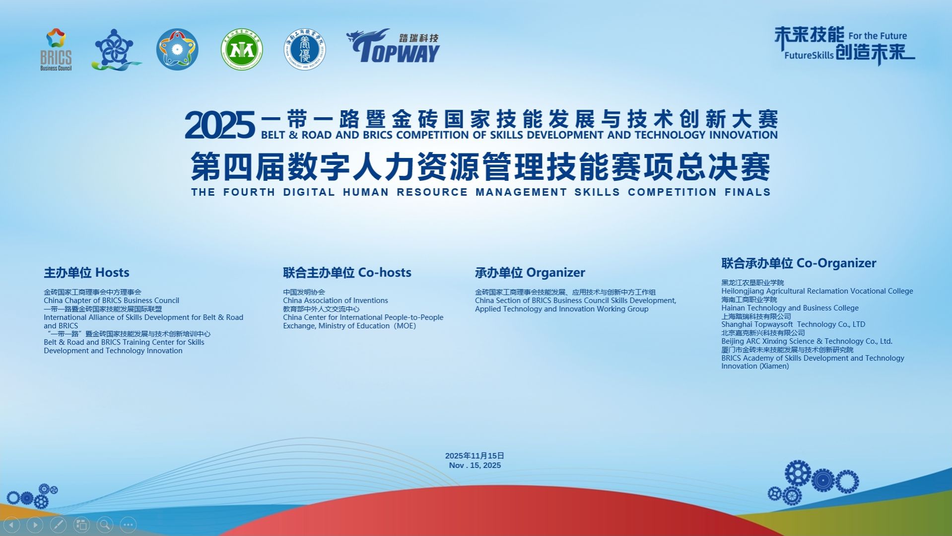 2025年11月15日,第九届“一带一路”暨金砖国家技能发展与技术创新大赛数字人力资源管理赛项全国总决赛圆满落幕。由管理学院高雅楠、吴姗珊老师指导,23级学生邰圣适、24级学生桑秋悦、贾璐组成的参赛团队凭借扎实的专业基础和出色的现场发挥,荣获全国三等奖。