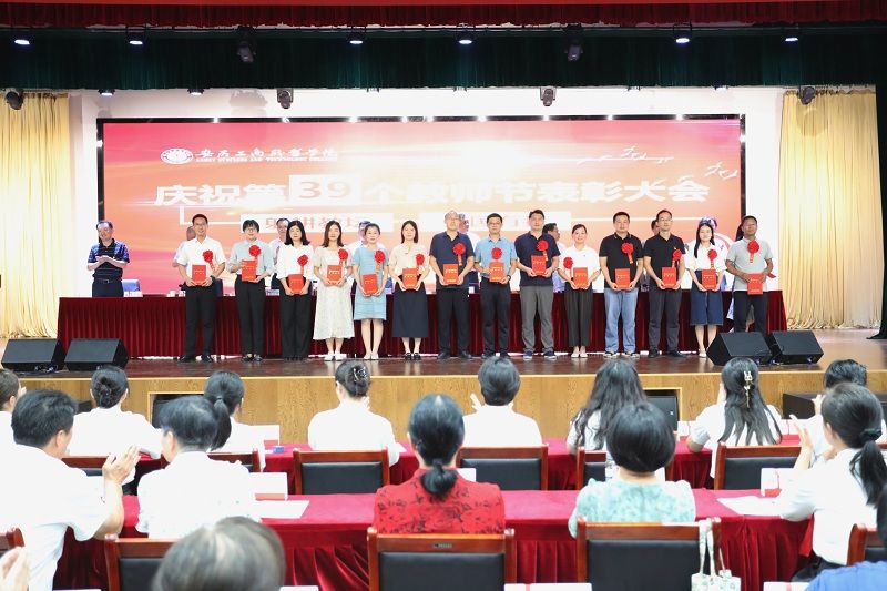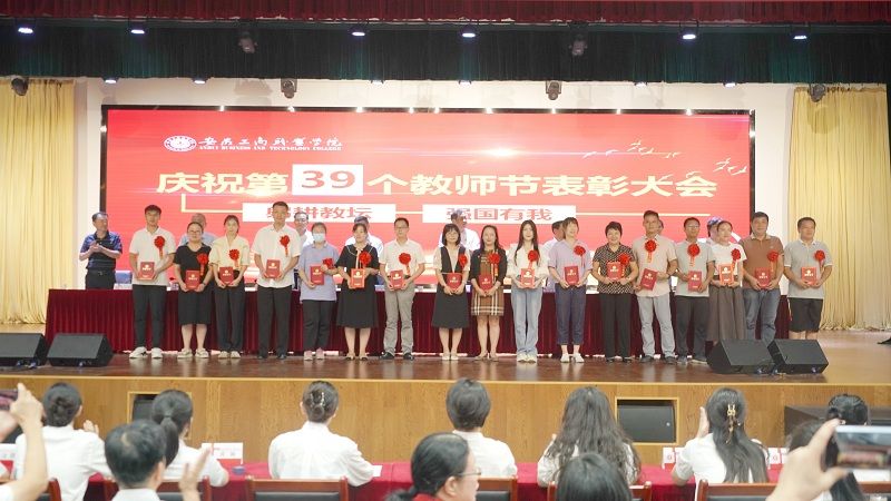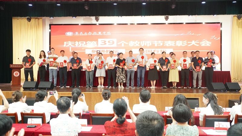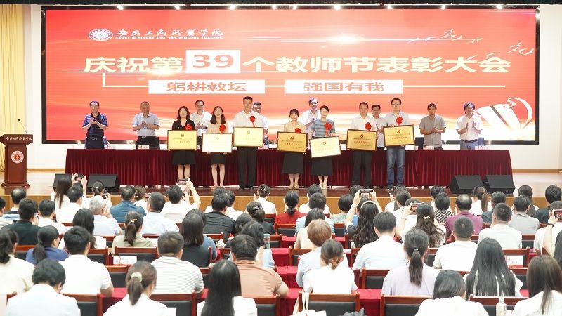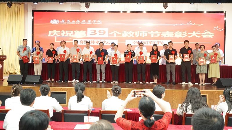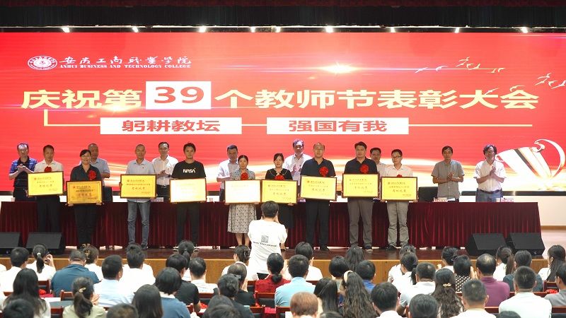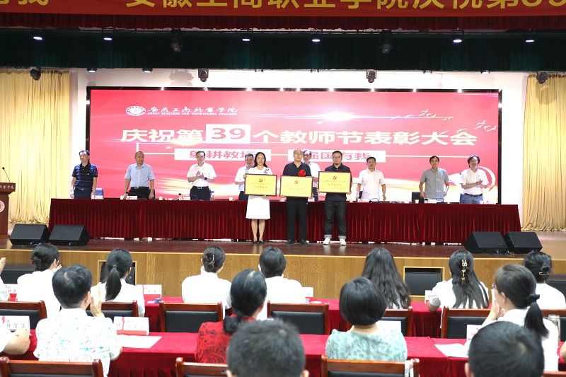 在第39个教师节即将到来之际,9月8日下午,学校在双凤校区大学生活动中心,隆重举行“躬耕教坛、强国有我”----必赢766net手机版庆祝第39个教师节表彰大会。校领导、全体教师和部分学生代表参加了大会,大会由党委副书记陈行主持。