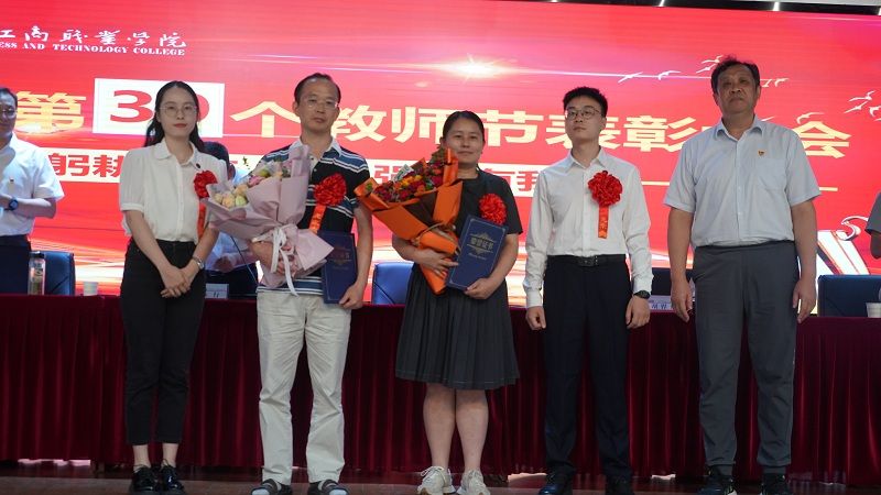 党委委员、副院长陈章奇宣读了2022-2023学年教育教学类省级以上各项荣誉和一系列取得重大突破的国家级成果,党委委员、副院长胡捍东宣读了2022年度考核和2022-2023学年党建类先进集体和优秀个人的表彰决定,党委委员、纪委书记吴松飞宣读了2022-2023学年先进集体和个人、第九届优秀教研室和优秀教研室主任的表彰决定。会议对所有受表彰的先进集体和优秀个人举行了隆重的颁奖仪式。信息工程学院杨静老师和经济贸易学院吴浩波老师分别代表党务类和教学类优秀工作者发言。