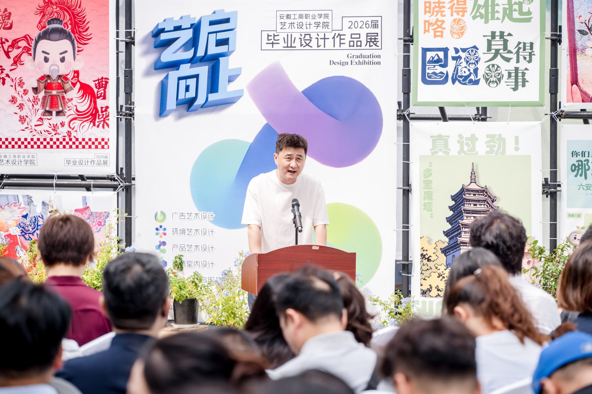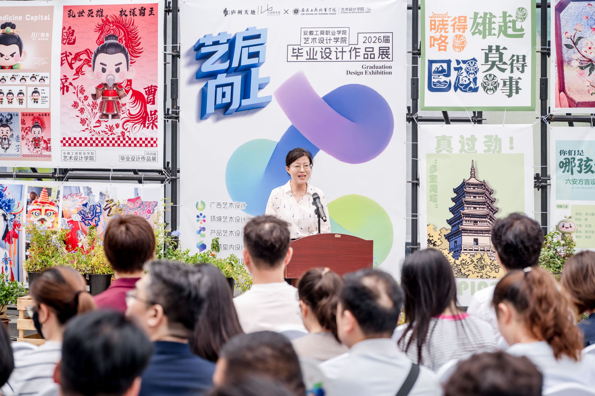 在开幕式上,孔成指出,学校将毕业设计作品展从校园移至金大地庐州天地·大地美术馆,让作品融入城市社区、对话市民生活。这是落实“时代新人铸魂工程”的具体行动,也是职业教育“开门办学”理念的生动实践。他强调,此次展览让艺术从殿堂走进街区,成为可触可感的生活元素;学生从“被培养者”转变为用设计参与城市更新的“青春力量”。当作品与街区共生、创意与消费共振,职业教育正将“城市社区”化为“最大实训场”,将“人民需求”变成“最好教科书”。