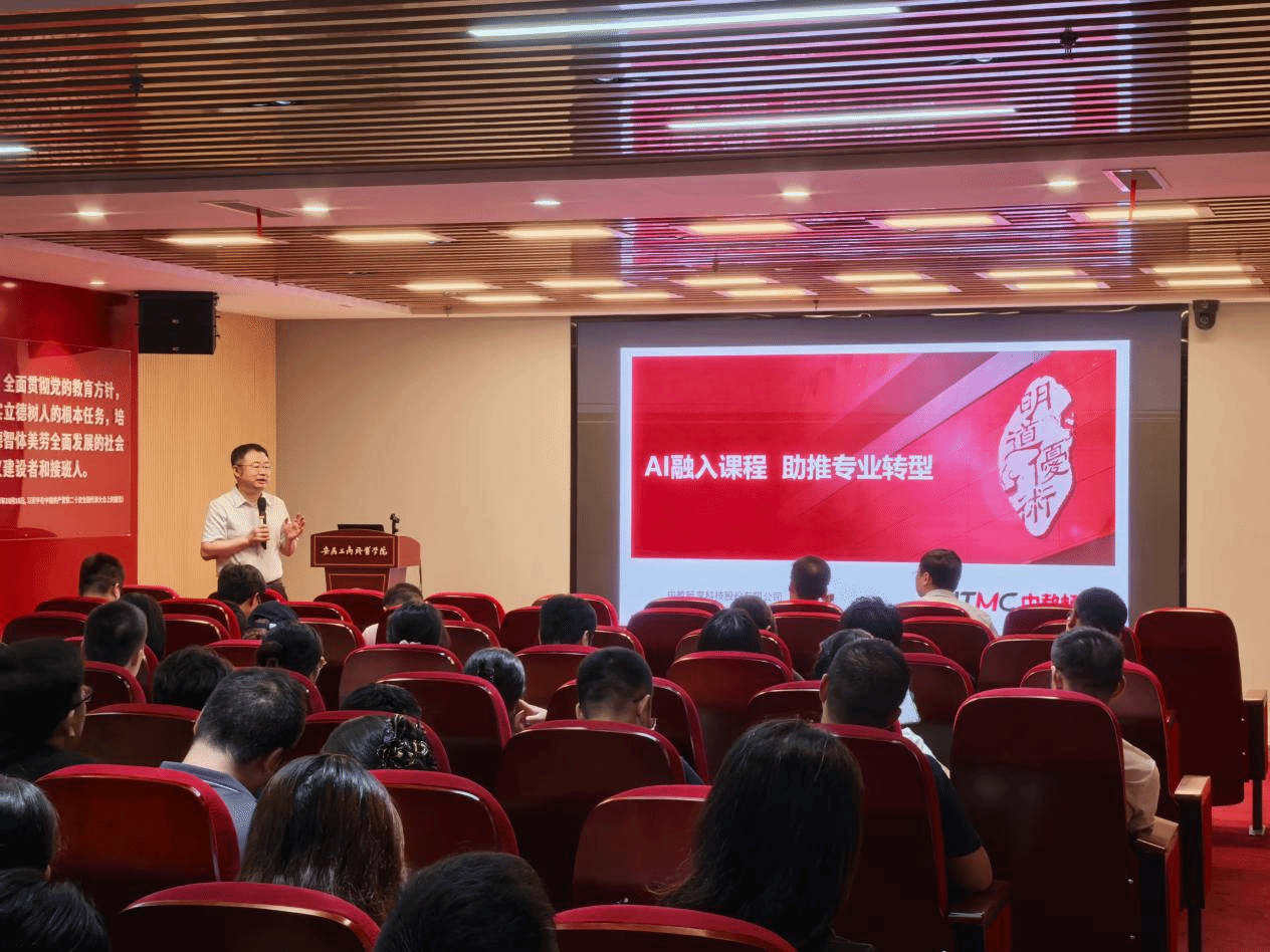 为深入推进“人工智能+教育”深度融入教学全流程,全方位赋能专业建设与教学实践,精准对接新一轮科技革命和产业变革需求,培养适配未来产业发展的高质量人才,学校于9月17日成功举办了“AI赋能课程建设”师资培训。学校党委委员、副院长陈章奇出席了活动,各二级学院院长、副院长,教务科长、教研室主任、教师等参加了培训。培训由学校教务处主办,邀请人工智能教育领域先行者——中教畅享科技股份有限公司的核心专家团队担任主讲。