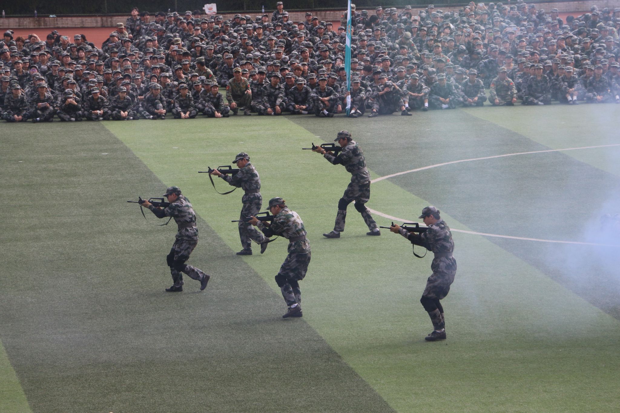 军训汇报表演在庄严的国歌声中伴随冉冉升起的国旗拉开序幕。五千多名参训新生步伐铿锵、口号嘹亮,紧随宏大的国旗方阵,依次走过主席台,将军训锤炼出的钢铁意志与团队精神完美呈现。方队队形展示、战地救护科目展示、军体拳、军歌大合唱等精彩表演,为我们带来了一场震撼的视觉盛宴。