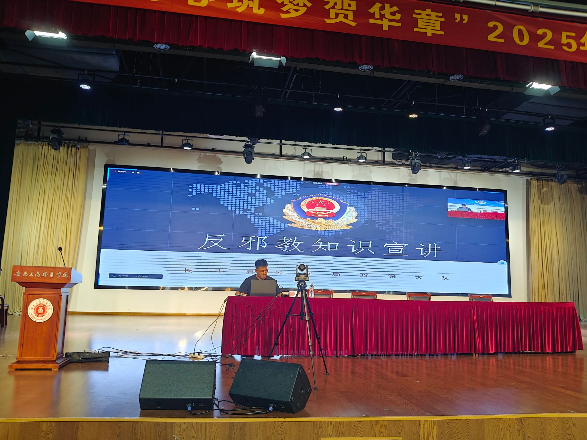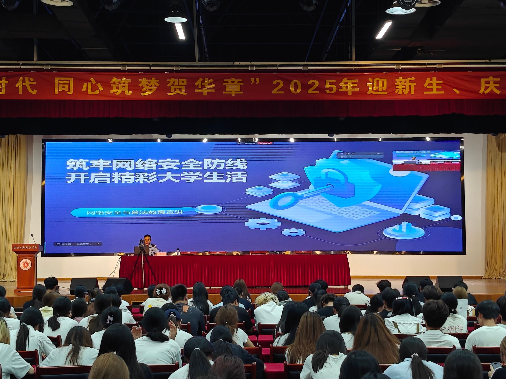 为切实提升2025级新生安全防范意识与自我保护能力,筑牢校园安全屏障,9月28日,我校联合属地公安、交警、社居等部门开展新生入学安全教育专题讲座,讲座以 “线下精讲 + 线上直播” 的形式进行,为全校新生系好校园生活的“安全第一扣”。 安全管理处负责人主持讲座,属地公安干警、交警、社区综治专干及全体新生参与。
