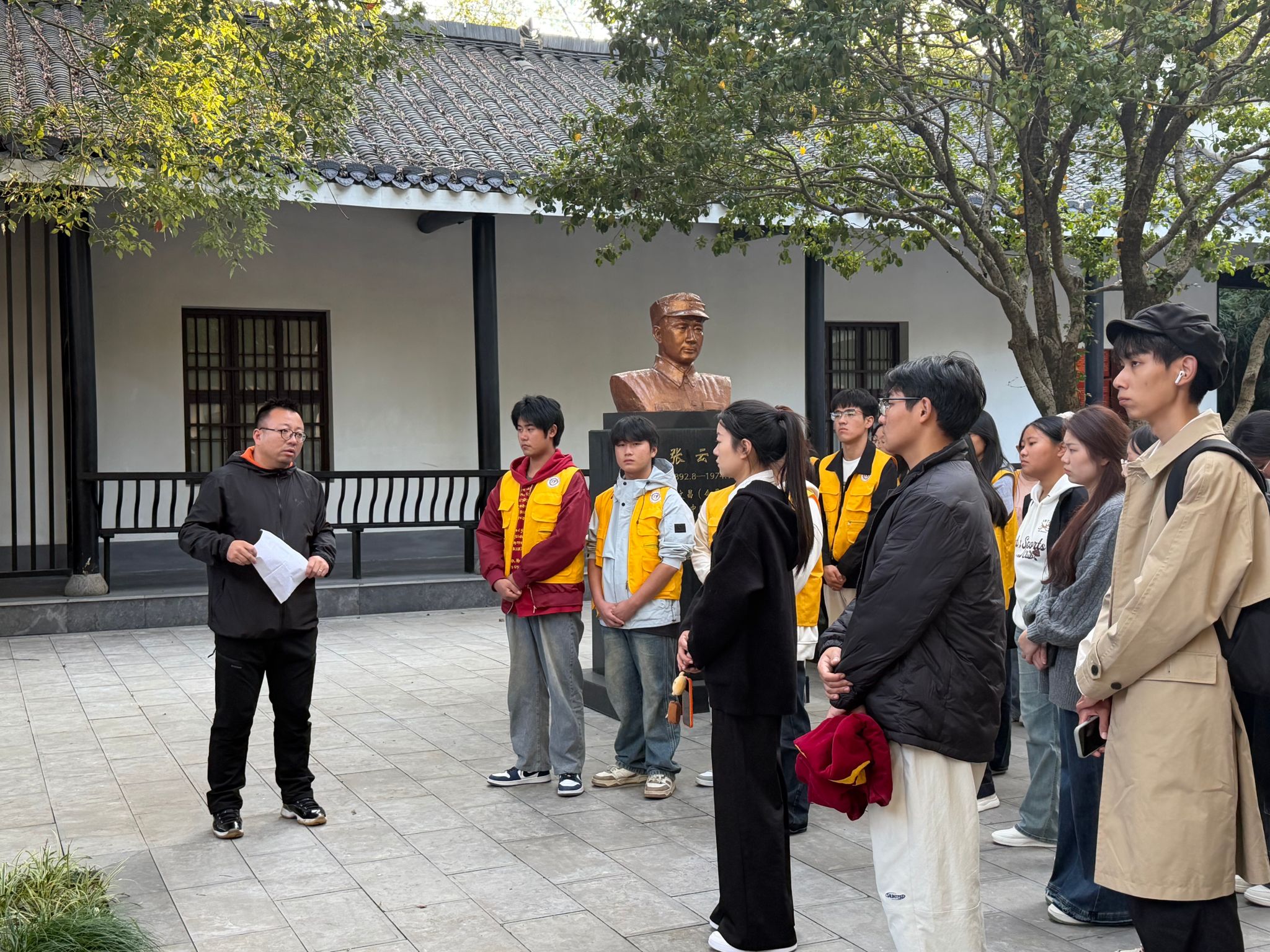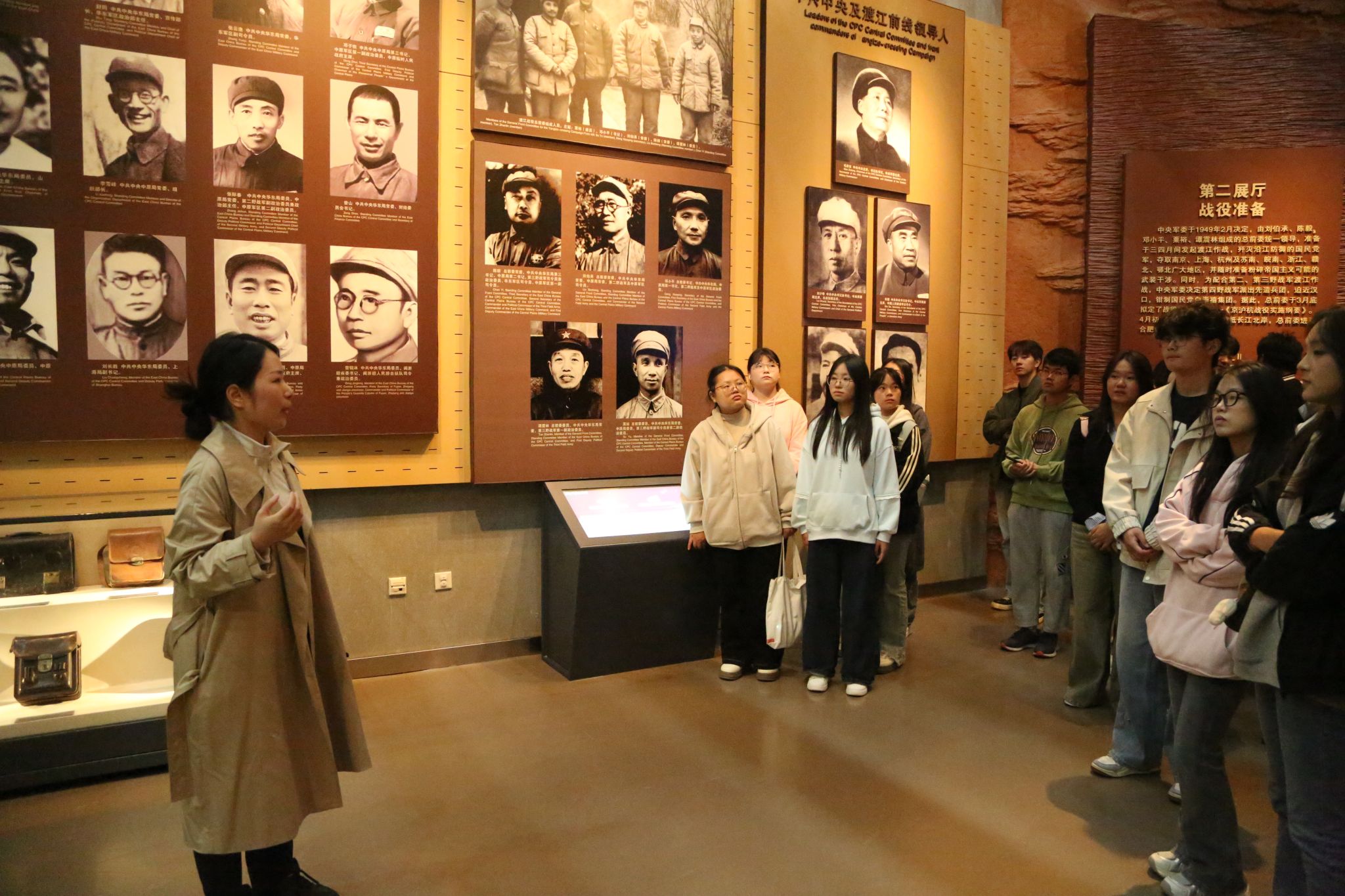 思政教师同行,理论在行走中“实”起来。此次活动的最大亮点,是将思政课堂“搬”到了革命历史现场。三位思政课教师陈慧、陈嵊、易佳佳将学生分成3组,分别在两处纪念地,结合具体史实,进行了现场教学。在渡江战役纪念馆的“胜利之师”群雕前,老师动情讲述军民鱼水情深;在指挥部旧址的作战室里,老师深入分析当时的战略布局与革命智慧。这堂“行走的思政课”将历史现场变为生动课堂,极大地激发了同学们的学习兴趣与情感共鸣。