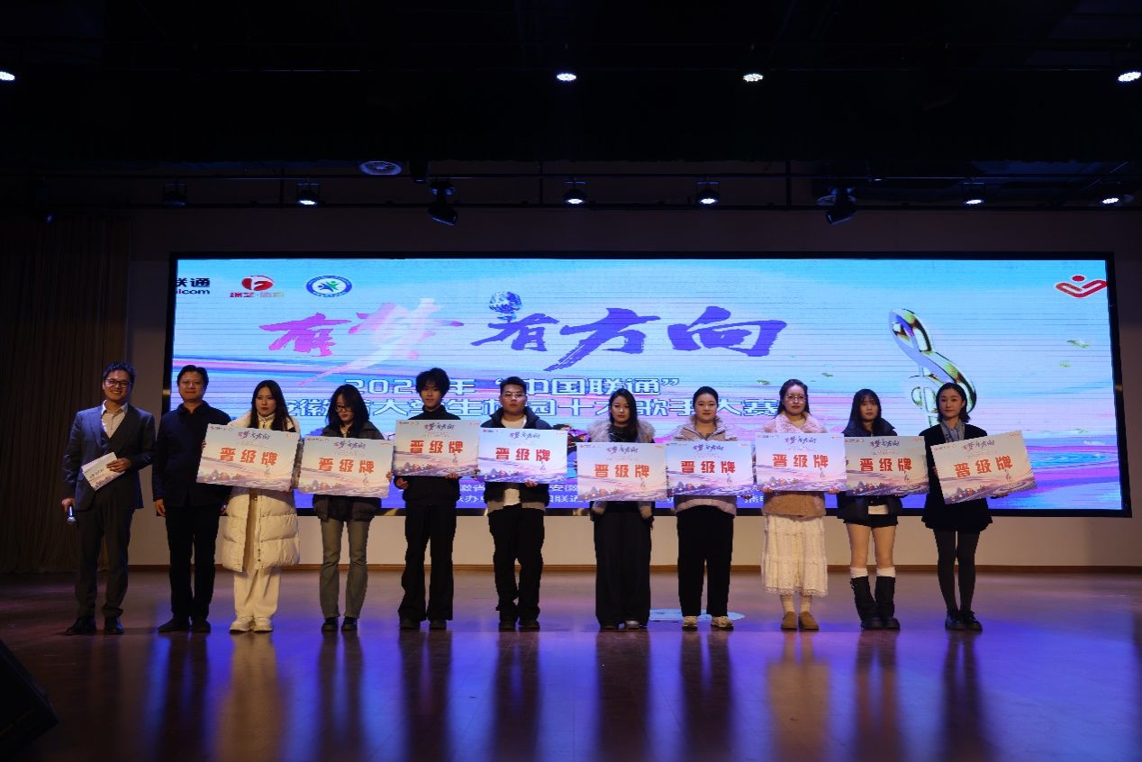 为服务青年成长成才,加强大学生思想引领,丰富校园文化生活。11月19日,由共青团安徽省委联合安徽省教育厅、安徽省文旅厅、安徽广播电视台、安徽省学生联合会等单位主办的“联通沃派 有梦有方向”——2025年“中国联通”安徽省大学生校园十大歌手大赛初赛第二场在我校大学生活动中心成功举办。团省委学校部部长邹永生,中国联通合肥市分公司党委委员、副总经理陈婷婷,必赢766net手机版党委委员、党委副书记陈行,必赢766net手机版党委委员、宣传统战部部长孔成出席活动,部分合肥高校团组织负责人、媒体朋友及我校师生代表等齐聚现场。本场比赛由安徽广播电视台全程直播,线下共计600余人共同见证了这场音乐盛宴。
