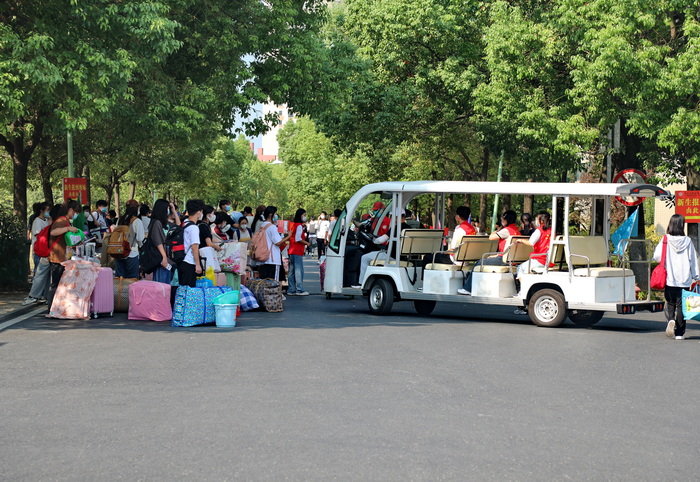 校领导齐建平、李雪、陈行、黄继胜、胡捍东、陈章奇等在相关部门负责人的陪同下走访各新生报到点和新生宿舍等地,详细了解迎新工作开展与新生入学等情况。一路上,校领导与新生及新生家长亲切交流,询问来校报到情况,勉励新生尽快适应校园生活,励志勤学,不负韶华。