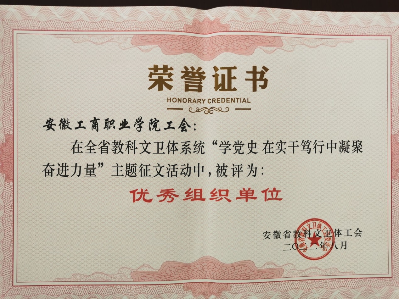 为认真学习贯彻习近平新时代中国特色社会主义思想,深入开展党史、新中国史、改革开放史、社会主义发展史教育,推进党史学习教育常态化长效化,根据开展“中国梦”·劳动美·安徽篇章——喜迎二十大 建功新时代”主题宣传教育活动实施方案有关要求,省教科文卫体工会组织开展了以“学党史 在实干笃行中凝聚奋进力量”主题的征文活动。