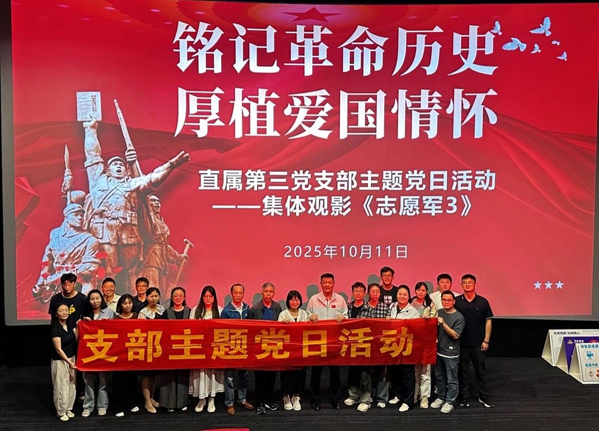 为弘扬爱国主义精神,传承红色基因,10月11日下午,直属第三党支部组织全体党员在万达影院观看了爱国主义影片《志愿军3:浴血和平》。影片深刻展现了志愿军将士不畏强敌、不怕牺牲的革命精神,通过一幕幕震撼的历史场景,让在场党员仿佛回到了那个战火纷飞的年代,深受教育和触动。观影结束后,大家纷纷表示,要铭记革命先辈的英勇事迹,传承和弘扬伟大的抗美援朝精神,在今后的工作中坚定理想信念,立足本职岗位,以实际行动践行初心使命,努力为学校事业高质量发展贡献自己的力量。(撰稿:刘露;一审:刘露;二审:朱广袤;三审:余丙炎)