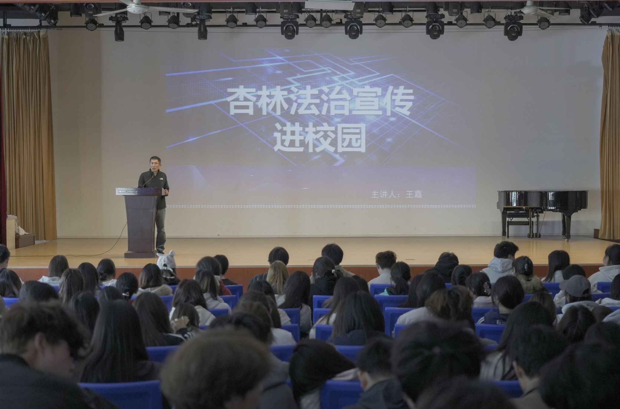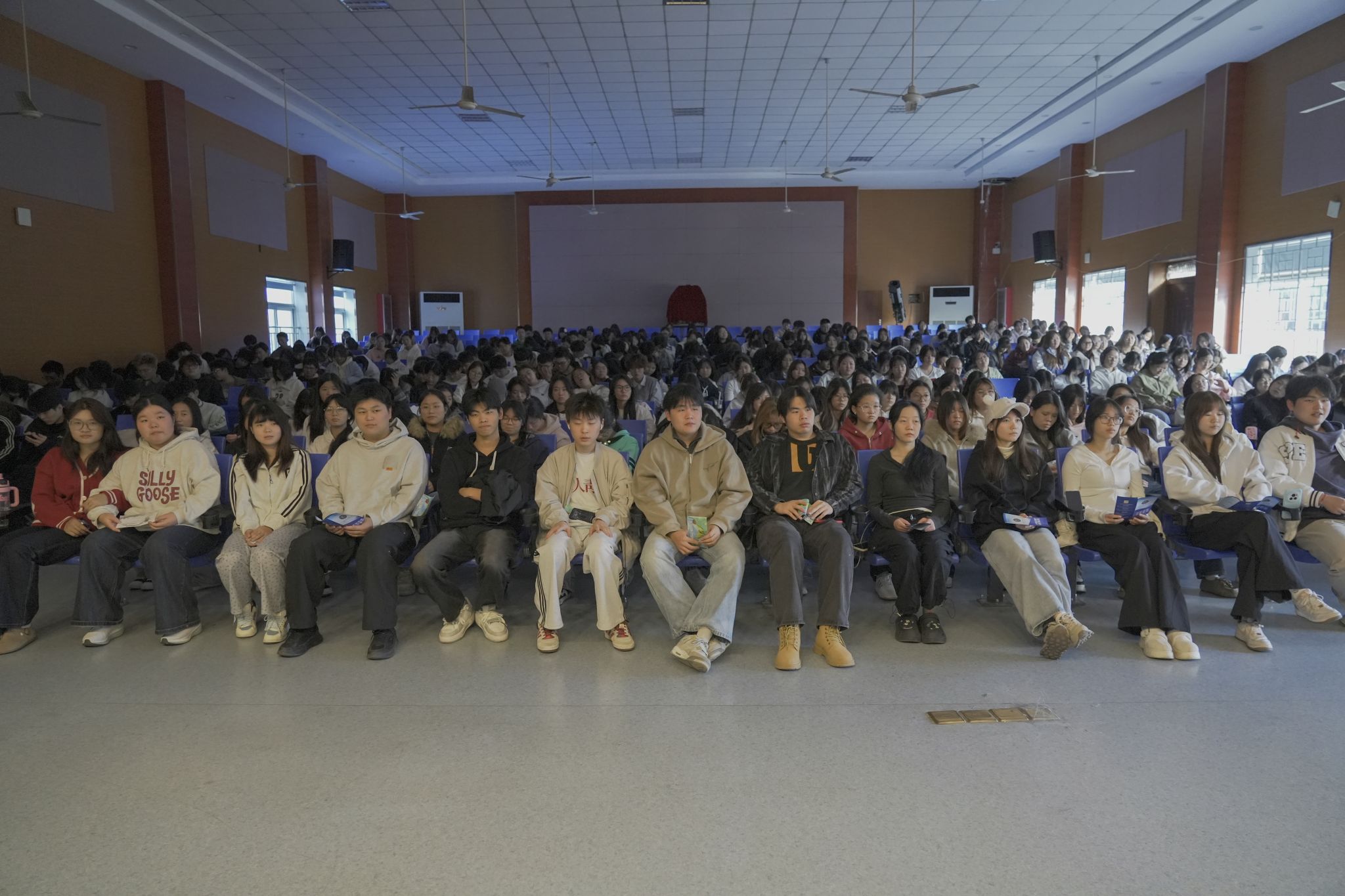 11月12日下午,必赢766net手机版联合杏林派出所开展校园法制安全进校园暨防范电信网络诈骗宣传教育活动。庐阳分局杏林派出所法制宣讲员王嘉受邀主讲。必赢766net手机版25级全体新生、24级部分学生共400余人、部分辅导员参与活动。学院党总支副书记张乐主持活动。