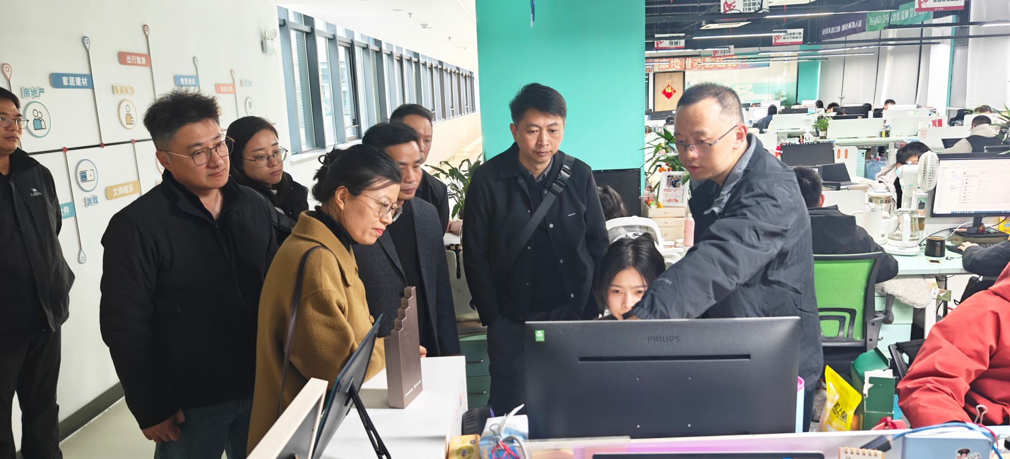 随后,学院一行前往安徽今日互联科技有限公司。总经理李进陪同参观了企业各部门,详细介绍了公司的组织架构、业务模式与发展规划。在随后举行的座谈中,双方就校企合作路径、实习实训基地建设、产业学院共建等议题进行了深入探讨。魏芬院长表示,学院愿与企业在课程共建、师资交流、项目合作等方面进一步对接,推动产教融合落到实处,共同培养符合行业需求的高素质艺术设计人才。