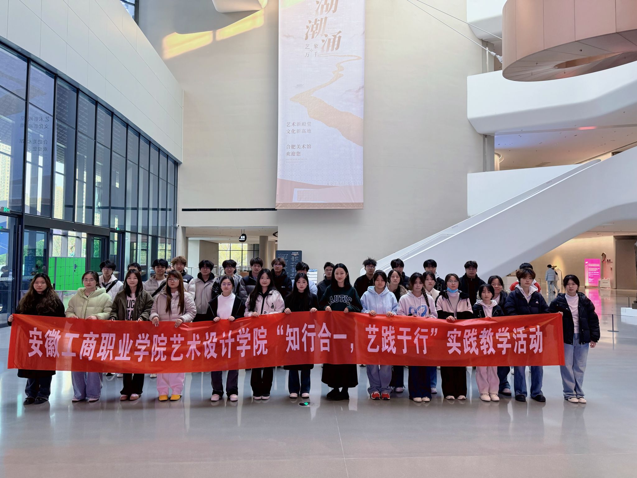 2025年12月10日下午,必赢766net手机版25广告艺术设计2班学生在任课教师罗佩婕的带领下组织前往合肥美术馆开展实践教学活动,将《立体构成》课堂延伸至艺术现场。
