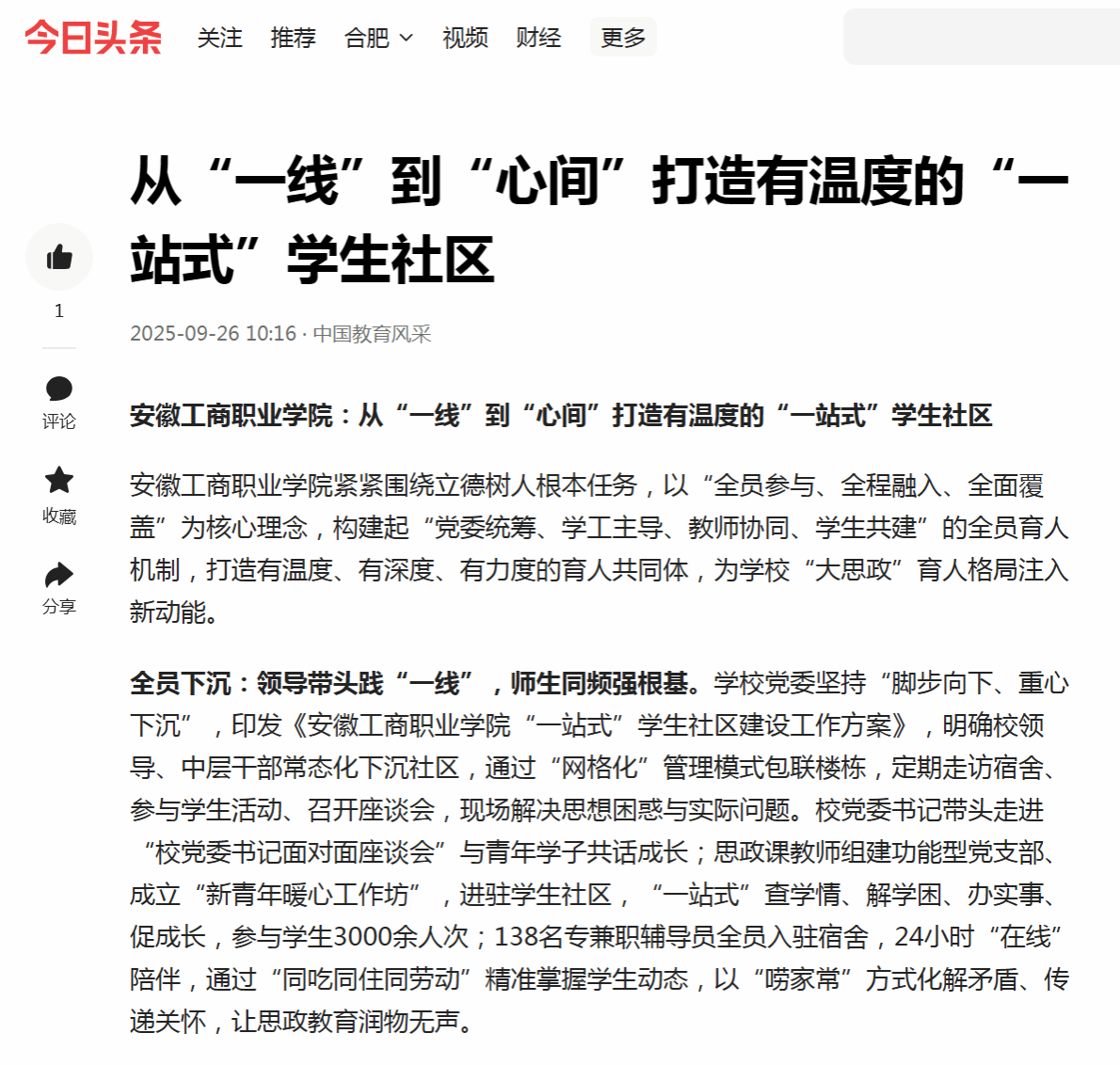 原文链接:【今日头条】报道:从“一线”到“心间”打造有温度的“一站式”学生社区