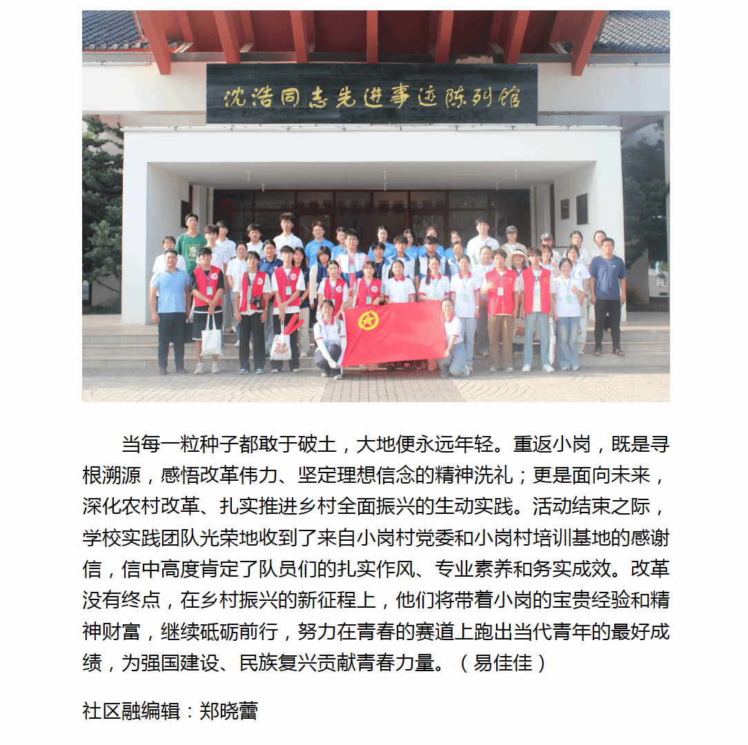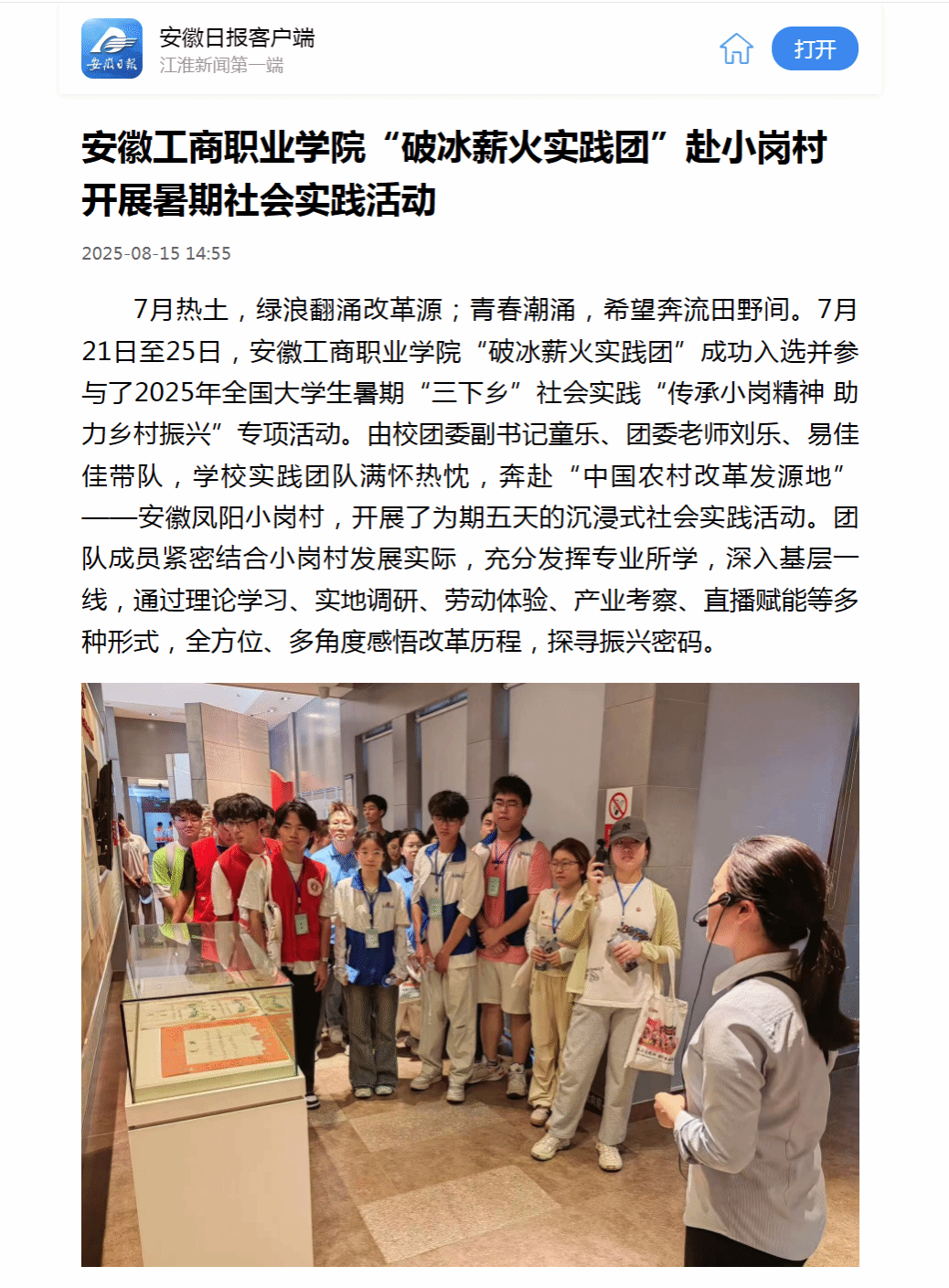 原文链接:【安徽日报】客户端报道:必赢766net手机版“破冰薪火实践团”赴小岗村开展暑期社会实践活动