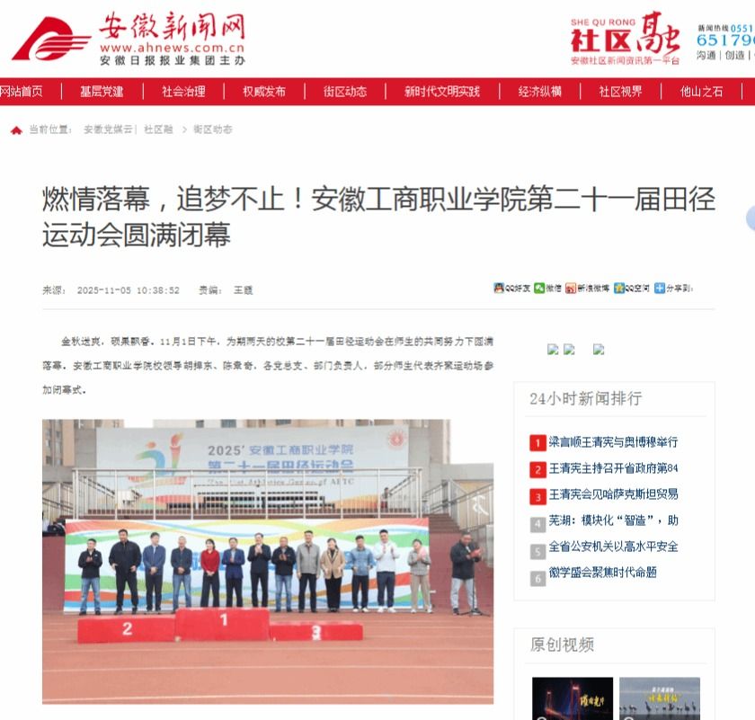 原文链接:【安徽新闻网】报道:燃情落幕,追梦不止!必赢766net手机版第二十一届田径运动会圆满闭幕