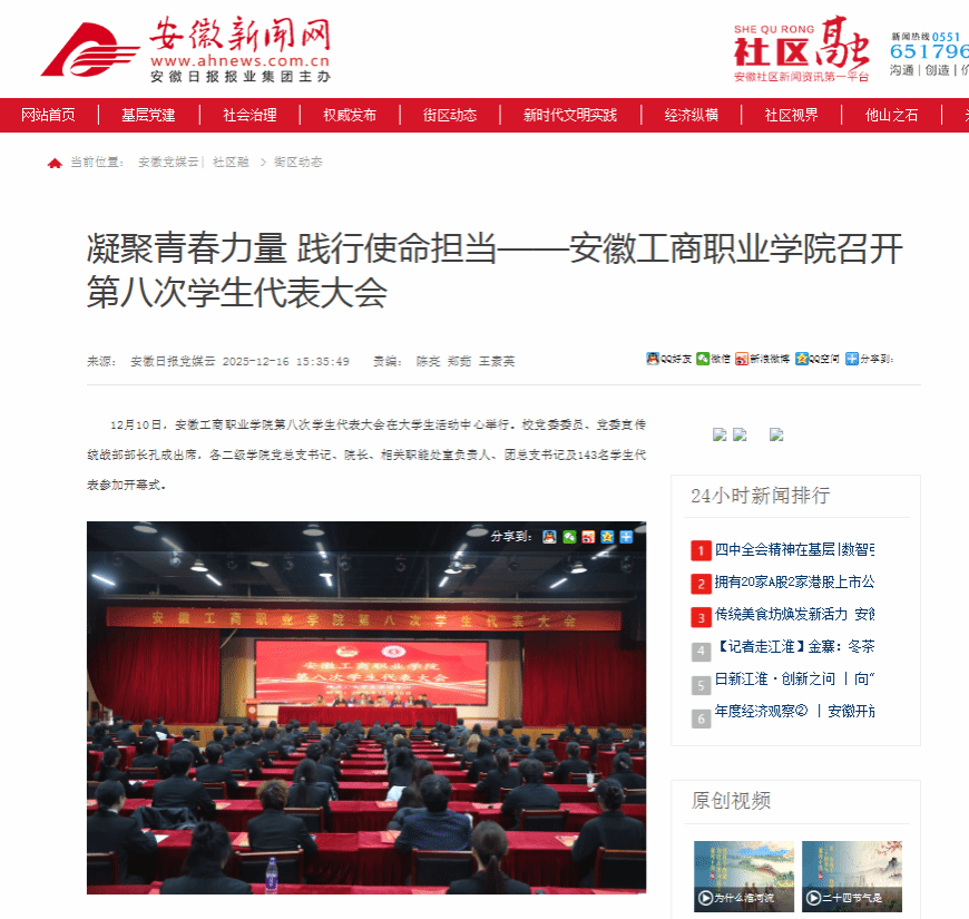 原文链接:【安徽新闻网】报道:凝聚青春力量 践行使命担当——必赢766net手机版召开第八次学生代表大会