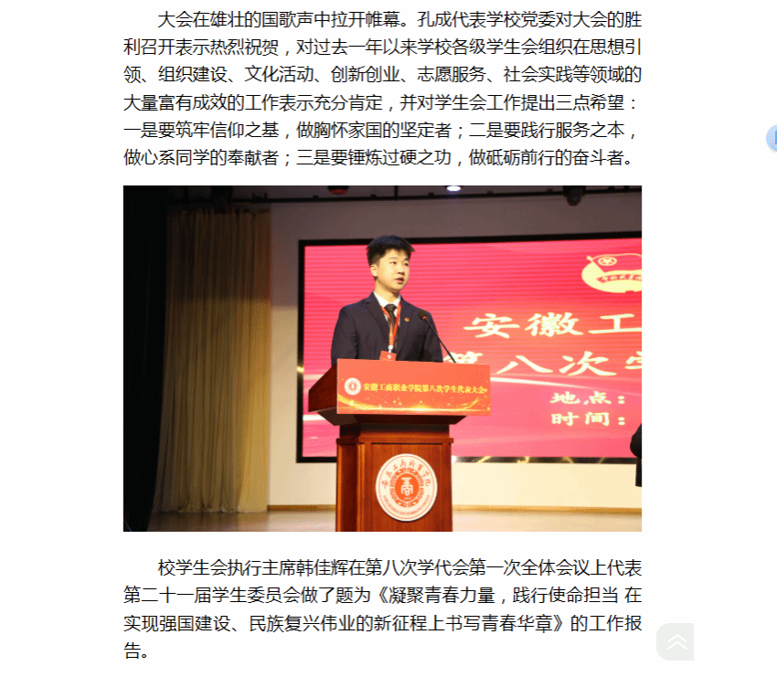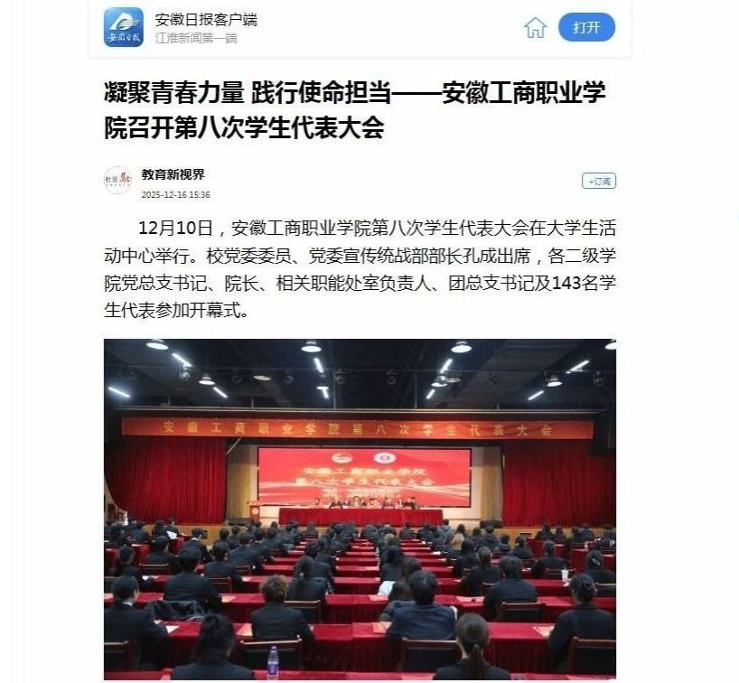 原文链接:【安徽日报客户端】报道:凝聚青春力量 践行使命担当——必赢766net手机版召开第八次学生代表大会