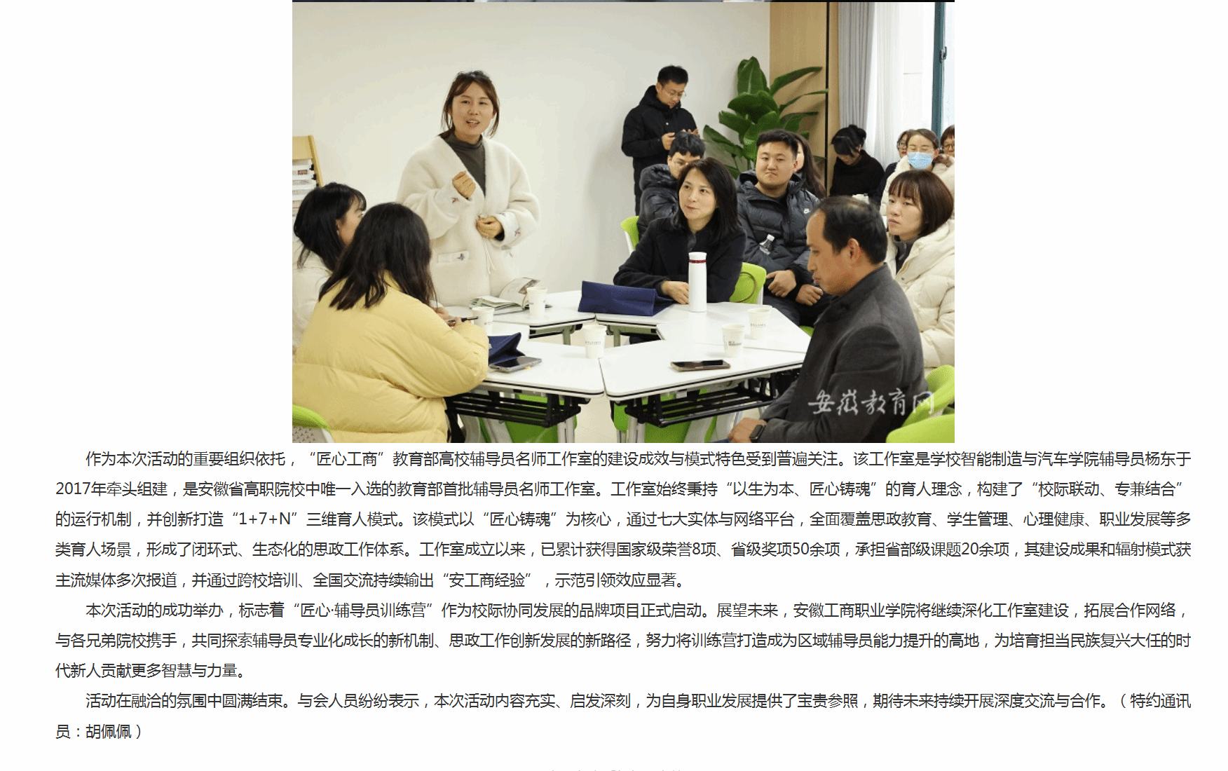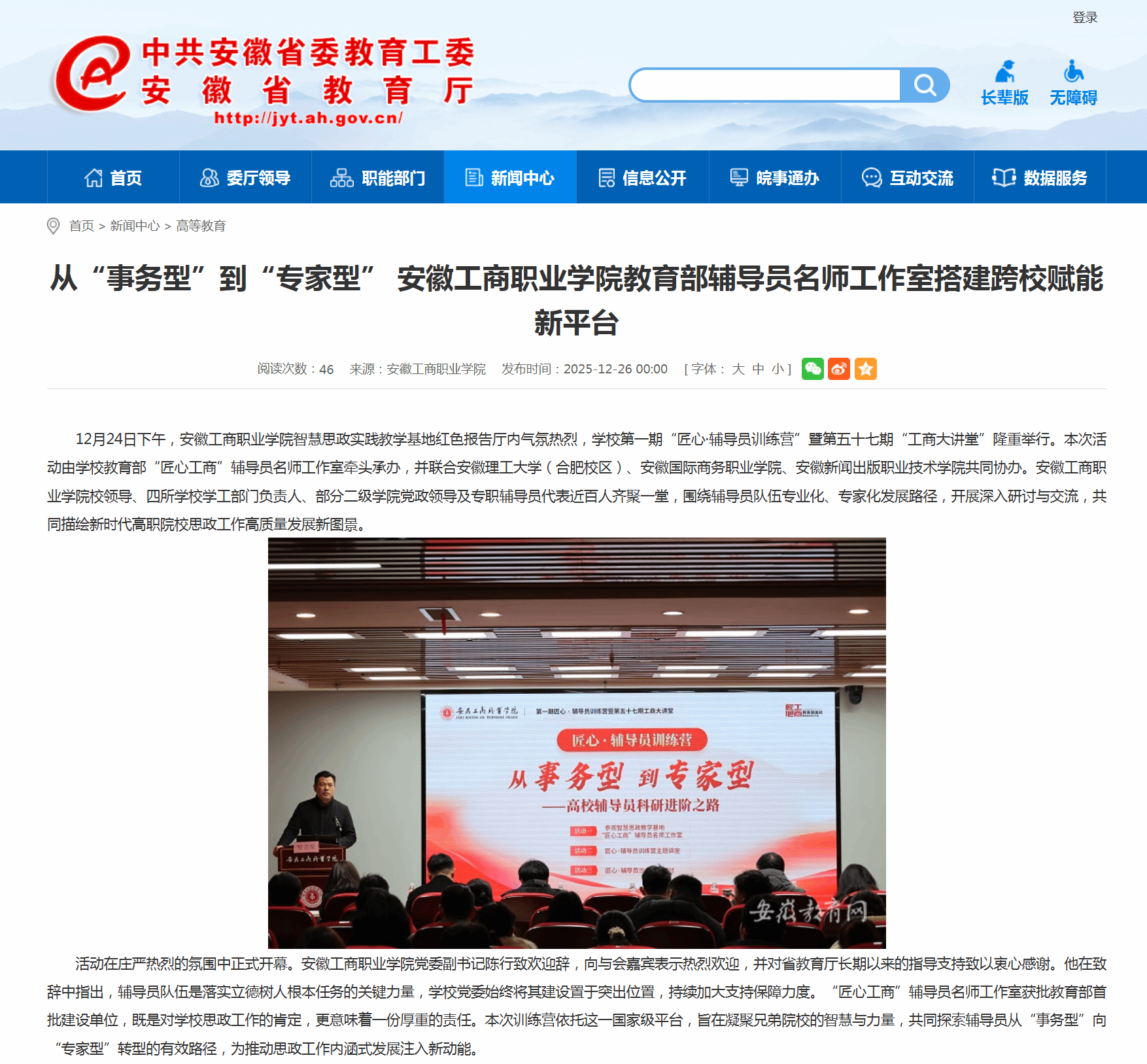 原文链接:【安徽教育网】报道:从“事务型”到“专家型”:必赢766net手机版教育部辅导员名师工作室搭建跨校赋能新平台