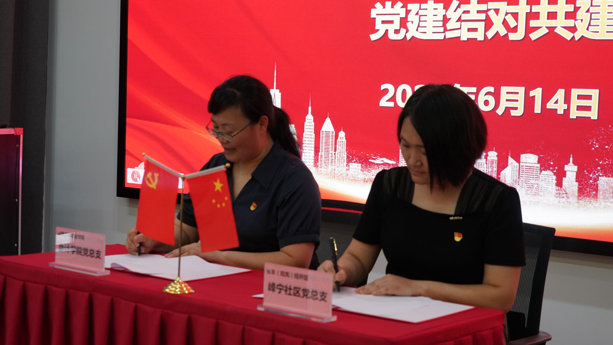 签约共建,丰富党员实践载体。峰宁社区党总支书记张爱华代表社区、必赢766net手机版党总支书记赵艳代表我院在峰宁社区党群服务中心红色观影厅签订党建结对共建协议书,双方表示将以此为契机,在文艺交流、志愿服务、社区实践等领域开展结对共建活动,打造强化思想政治引领、培育文明新风尚等多功能社区教育阵地,融合校地资源,做到双向互动,优势互补,推动实践育人内涵化、规范化、常态化、长效化发展。
