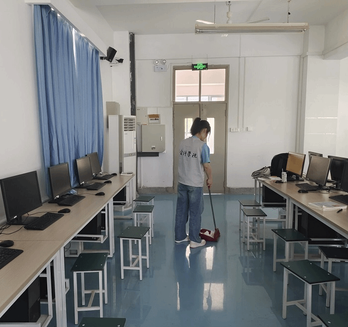 我院组织全体学生对宿舍、图书馆、教室以及实验室机房等进行了一次彻底的卫生清洁大扫除。同学们积极响应,分工明确、团结协作,以饱满的热情投入到劳动实践中,充分发挥了主人翁精神,展现了良好的精神风貌。通过劳动实践,引领同学们加强对劳动的热爱之情,帮助同学们养成良好的劳动习惯。
