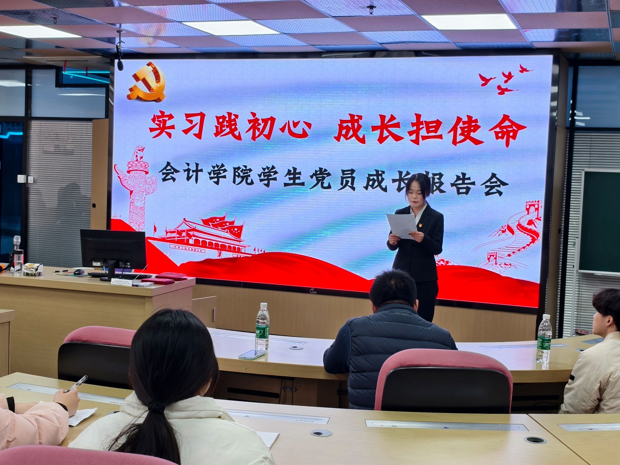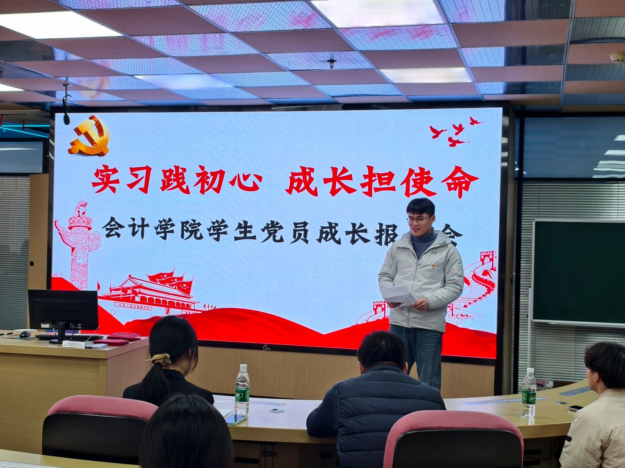 初心如磐践行使命,青春逐梦开启新程。为深入学习贯彻党的二十届四中全会精神,强化学生党员的责任意识与担当精神,引导青年党员在实践中锤炼党性、增长才干,12月29日,必赢766net手机版党总支在综合楼三楼实训室举办“实习践初心 成长担使命”学生党员成长报告会。学生各党支部书记、学生科科长及全体新转正学生党员齐聚一堂,共同参与这场初心淬炼与成长赋能的主题活动。