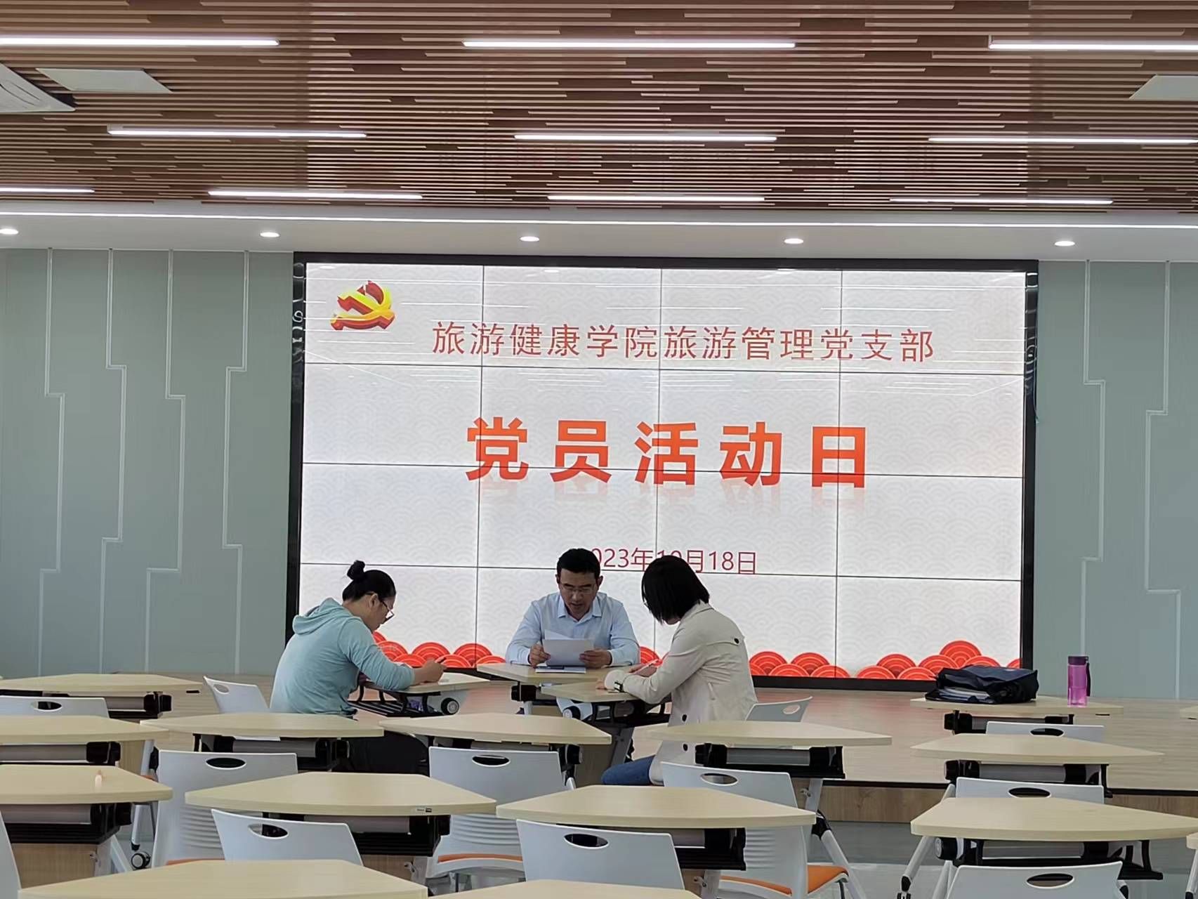 10月18日中午,旅游健康学院旅游管理教研室党支部在明德楼四楼VR实训室开展主题党日活动,活动由支部书记吴子钟主持。