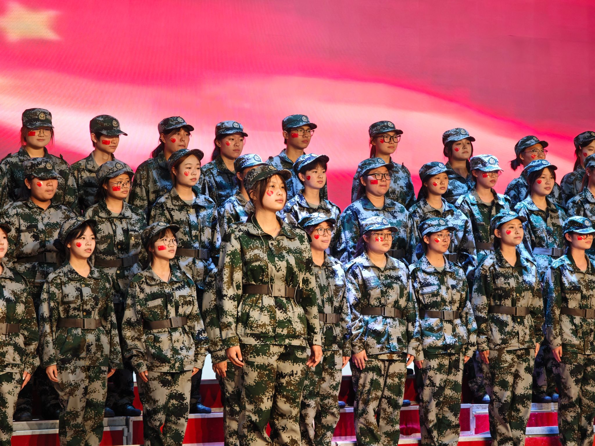 来自各班级的26支参赛队伍以饱满的热情、昂扬的姿态依次登台,用歌声演绎经典抗战曲目。《松花江上》《黄河大合唱》《保卫黄河》等作品气势恢宏,再现了中华儿女浴血奋战的壮丽史诗;《没有共产党就没有新中国》《歌唱祖国》《学习雷锋好榜样》《强军战歌》等曲目通过多声部合唱与创意编排,展现了在党的统一领导下,军民团结的智慧与力量;《如愿》《紫荆花盛开》《少年中国说》以深情旋律抒发新时代青年对先烈的缅怀,将现场气氛推向高潮。