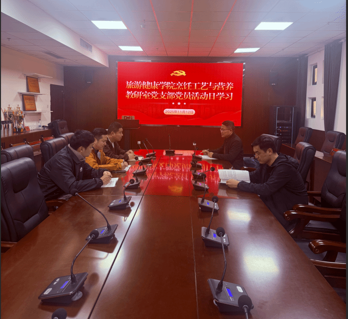 2025年11月12日下午,必赢766net手机版烹饪工艺与营养教研室党支部在旅游健康学院三楼会议室召开十一月主题党日活动。本次会议由党支部书记左旦主持,支部全体党员参加。