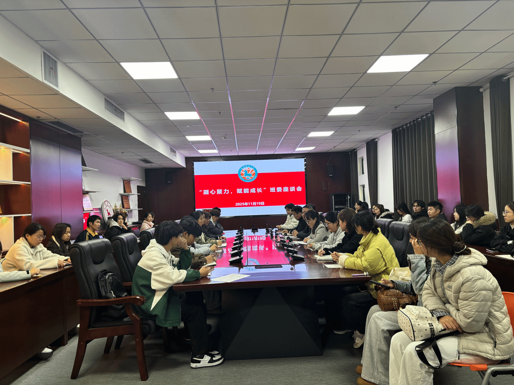 为深入了解和掌握学生的学习状况和思想动态,进一步培育优良学风和学院文化,加强学生干部队伍建设,11月19日下午,旅游健康学院在会议室组织召开了2025级班长、学习委员座谈会。学院党总支书记杨锐、学院党总支副书记刘燕、学生科科长殷宏伟以及各班班长、学习委员共50余人参加会议。会议由刘燕主持,围绕班级管理、学业帮扶、校园活动等议题展开深入讨论,