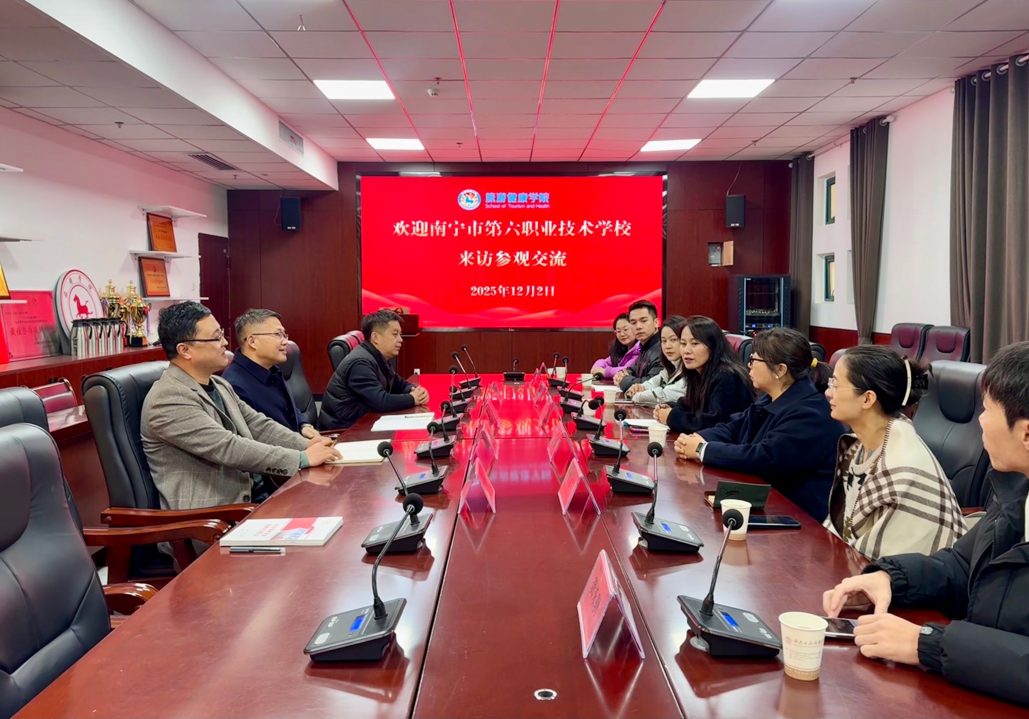 12月2日上午,南宁市第六职业技术学校高职部主任黄燕一行到访必赢766net手机版旅游健康学院,双方围绕技能大赛备赛、人才培养体系建设等核心议题开展深度调研交流。旅游健康学院副院长王彦龙主持交流会,学院党总支书记杨锐、教务科长傅雨晴、办公室主任孙群出席会议。