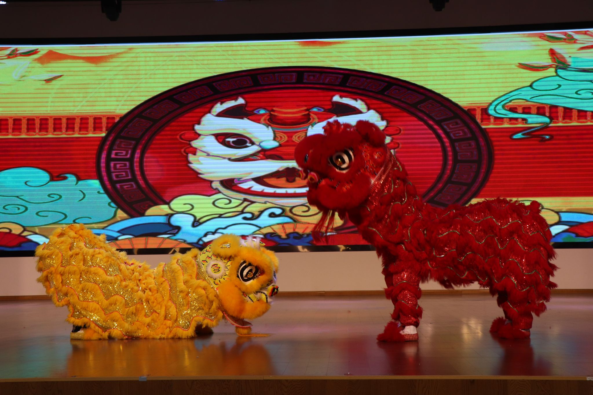 “咚咚锵!咚咚锵!”,随着激越的锣鼓声穿透云霄,两只金红相间的醒狮腾空而起,活动在传统舞狮《祥狮献瑞》中拉开帷幕。表演团队将“站腿”“吊腰”“座头”等经典动作一一呈现。在表演者的默契配合下,狮子时而威风凛凛,昂首阔步;时而灵动俏皮,摇头摆尾,将狮子的神态展现得惟妙惟肖。富有节奏感的锣鼓声与狮子的腾跃、翻滚动作相得益彰,舞狮是中国优秀传统艺术,这不仅是技艺的展示,更是文化基因的青春表达。