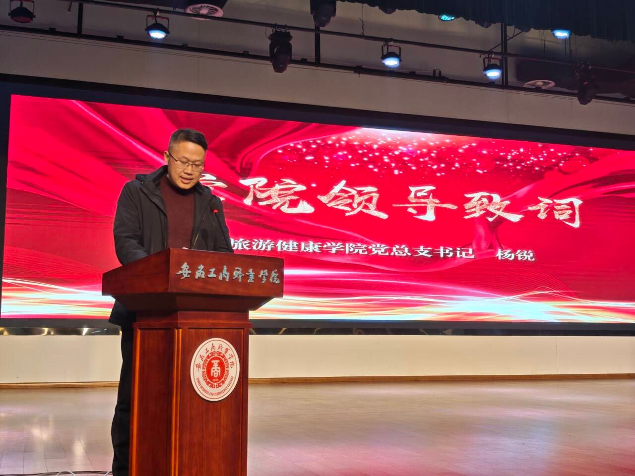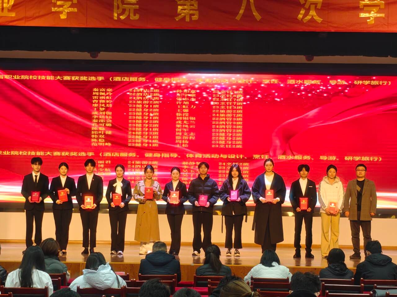 在过去的一年里,旅游健康学院学生在技能大赛、勤奋学习、社会实践、志愿服务等方面取得了优异的成绩。为充分发挥优秀学生的榜样力量,推进先进典型示范工程,引导和激励学生勤奋学习,奋力拼搏,营造积极向上的优良学风,12月11日中午,旅游健康学院2025年度优秀大学生表彰大会在双凤校区大学生活动中心举行。旅游健康学院党政领导班子成员以及各教研室负责人、专任教师及辅导员出席了本次活动。