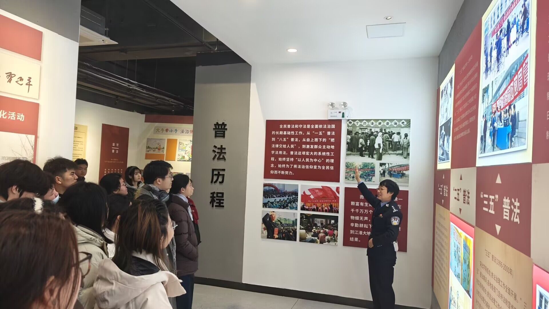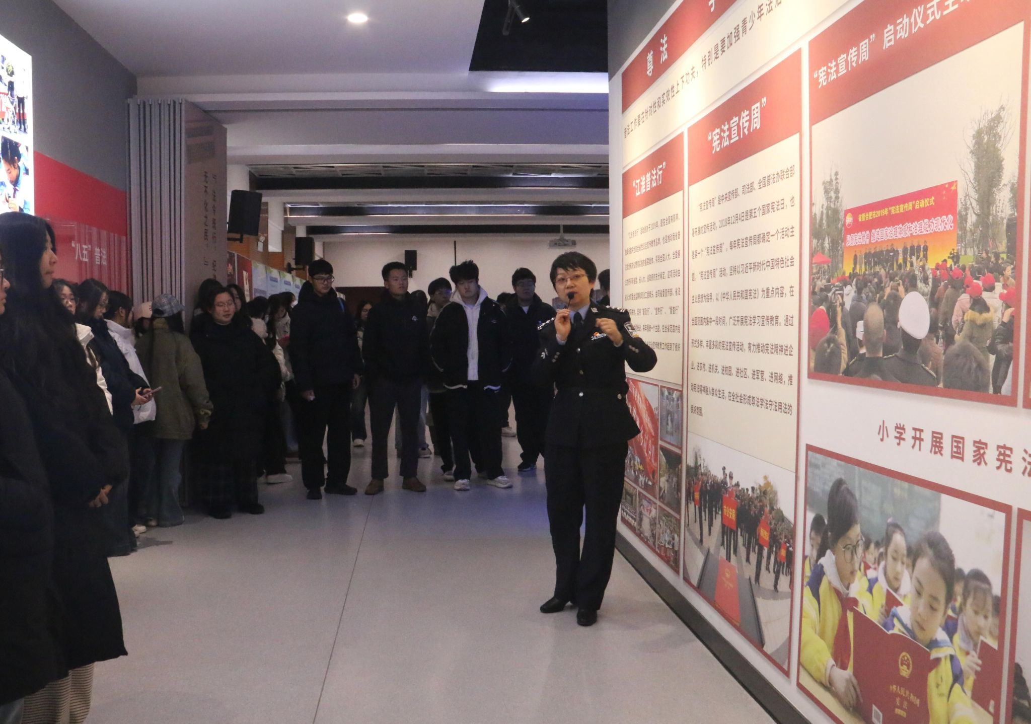 为深入学习宣传贯彻习近平法治思想,全面落实“八五”普法规划要求,持续深化青少年法治教育,12月24日下午,我校团委组织师生代表共65人走进安徽省法治宣传教育基地,参观了由安徽省教育厅主办的“学思践悟习近平法治思想 深耕厚植青少年法治教育”主题成果展。