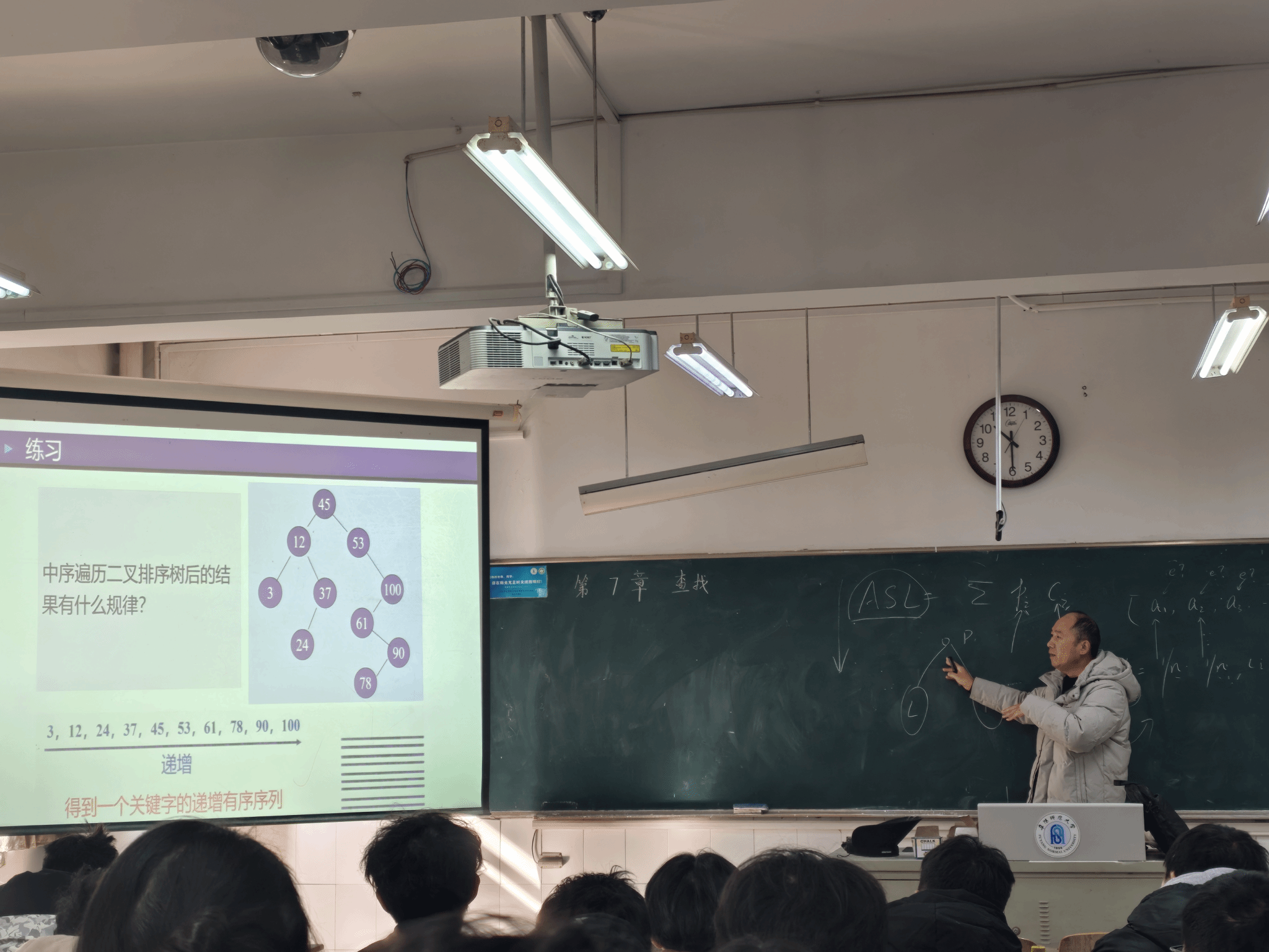 本次观摩的课程为《数据结构》第7章“查找”相关内容,课堂上,姚中华老师围绕二叉树的结构特性、中序遍历的核心算法展开系统讲授。授课过程中,姚老师以清晰的逻辑梳理了二叉树的定义与存储方式,通过实例演示拆解中序遍历的递归与非递归实现步骤,同时结合行业实际应用场景,讲解了该算法在数据检索、代码优化等领域的实践价值,课堂氛围生动且富有深度。
