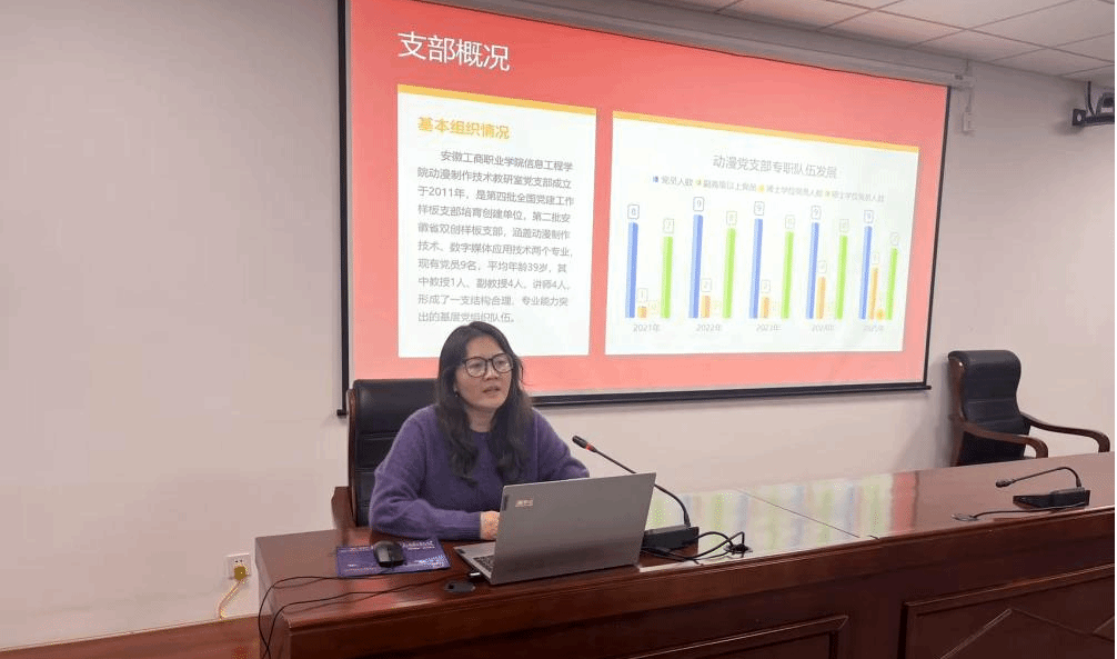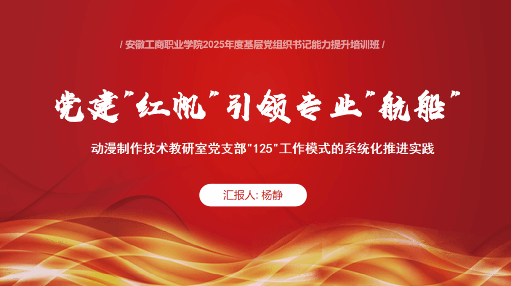 杨静书记的报告紧扣基层党建与专业发展深度融合的核心主题,从支部概况、“125” 工作模式构建、“红帆六翼”生态体系升级、创新实践与荣誉成果、未来发展愿景等多个维度,系统分享了动漫制作技术教研室党支部的建设经验。