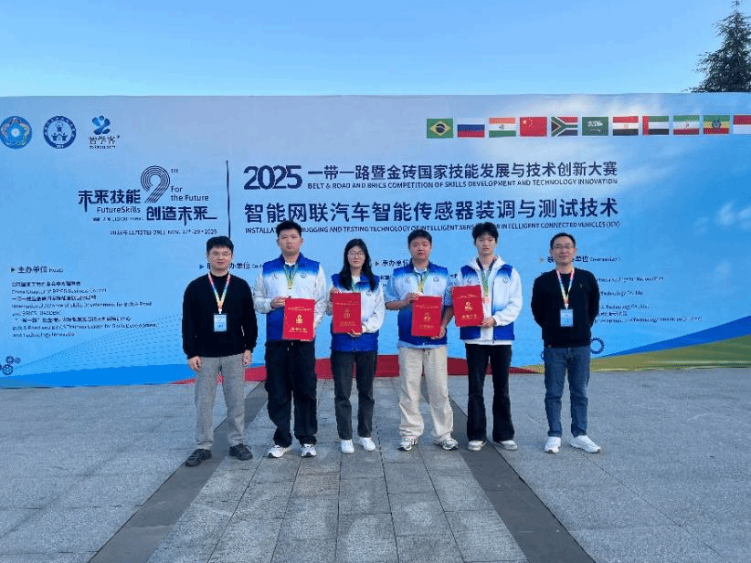 智能网联汽车教学团队再创佳绩。教师团队在指导学生参加世界技能大赛获得银奖后,精准定位金砖赛项再度出发。2025年11月29日,在湖南湘西进行的“智能网联汽车智能传感器装调与测试技术”赛项总决赛中,吴风波、夏志远两位教师锚定智能网联汽车ADAS传感器测试与安装工程师岗位任务,聚焦智能网联汽车ADAS传感器理论水平与装调排故能力培养,指导学生分别获得全国二等奖和全国三等奖的好成绩,是我校在智能网联汽车专业类赛项中取得的又一个重要突破。