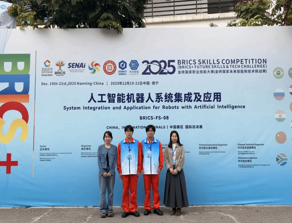 智能制造专业群锦上添花。2025年12月20日-21日,在广西进行的“人工智能机器人系统集成及应用”赛项总决赛中,张春芳、曹子沛两位教师携参赛学生曹荣、薛景瑞,在真实情况的生产安全竞赛场景中,结合人工智能技术模块,围绕人工智能集成平台部署、模型构建、智能机器人系统装调和路径规划等技术,反复锤炼技术细节、攻克系统难点,比赛中稳扎稳打,最终获得二等奖的好成绩,这是我校机电一体化专业群学生工程实践能力和创新能力又一突出体现,进一步加速了学生的职业转化进程。