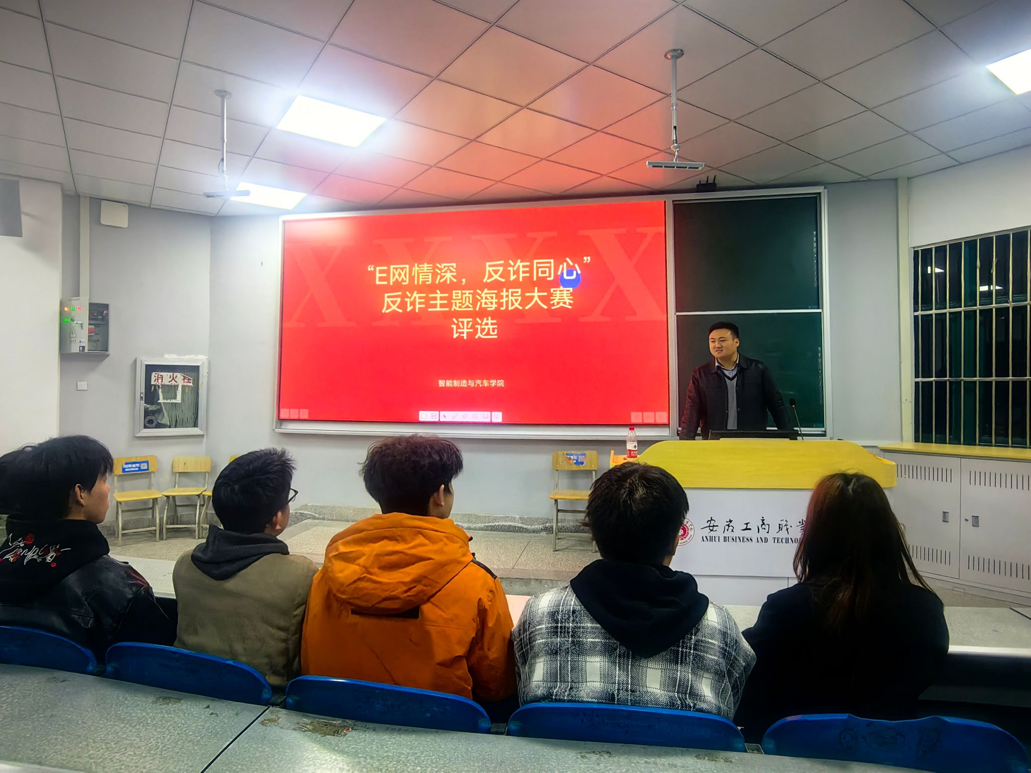 为深入学习贯彻习近平总书记关于打击治理电信网络诈骗犯罪工作的重要指示批示精神,同时丰富学校“全民终身学习”主题系列活动内容,近日,智能制造与汽车学院团总支在9号多媒体教室精心组织“E 网情深,反诈同心”主题海报大赛。团总支书记柯主、副书记马震出席现场。此次活动以艺术为桥,将反诈知识融入创意创作,为全院学子搭建了学习反诈、传播反诈的生动平台。